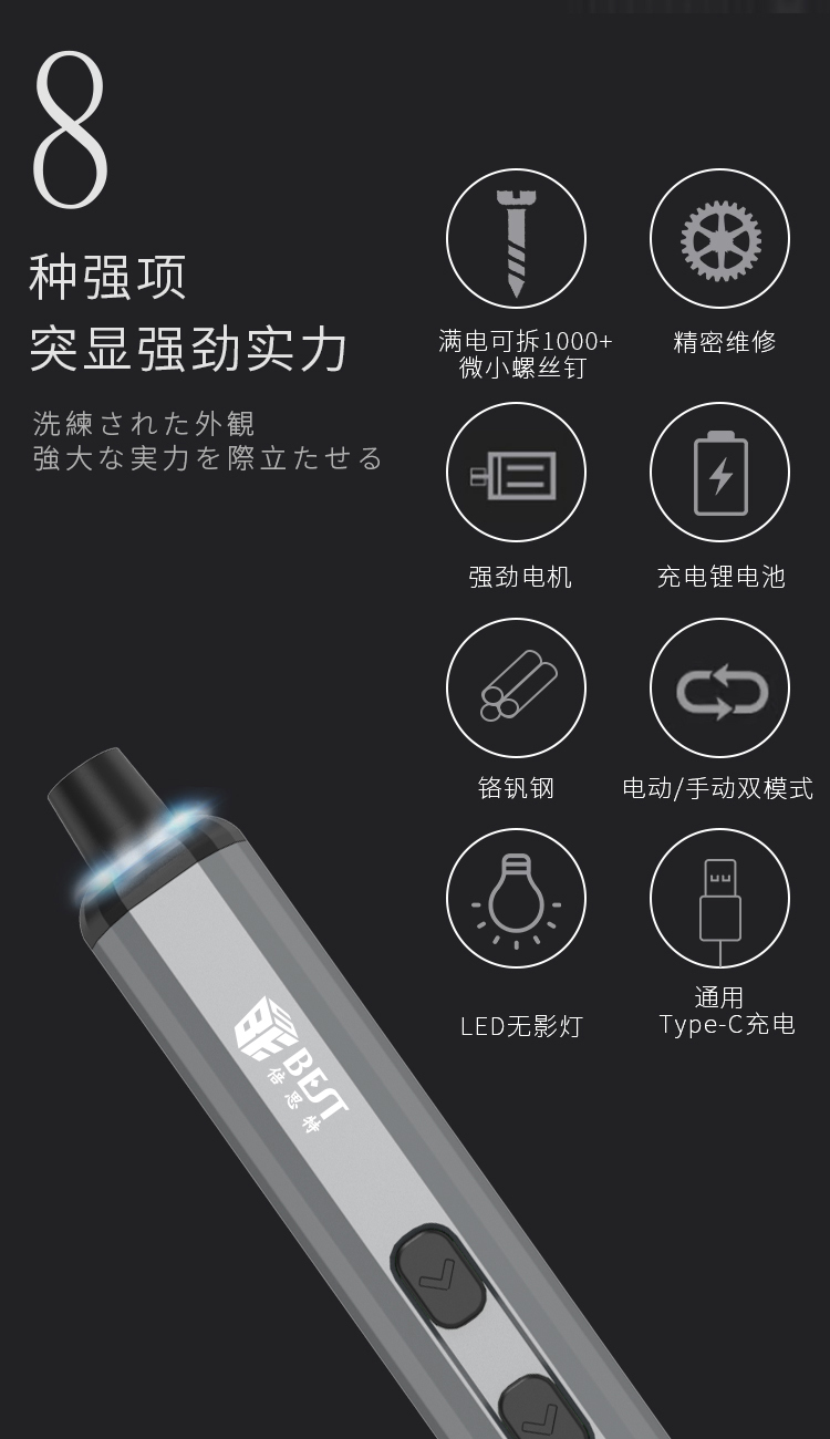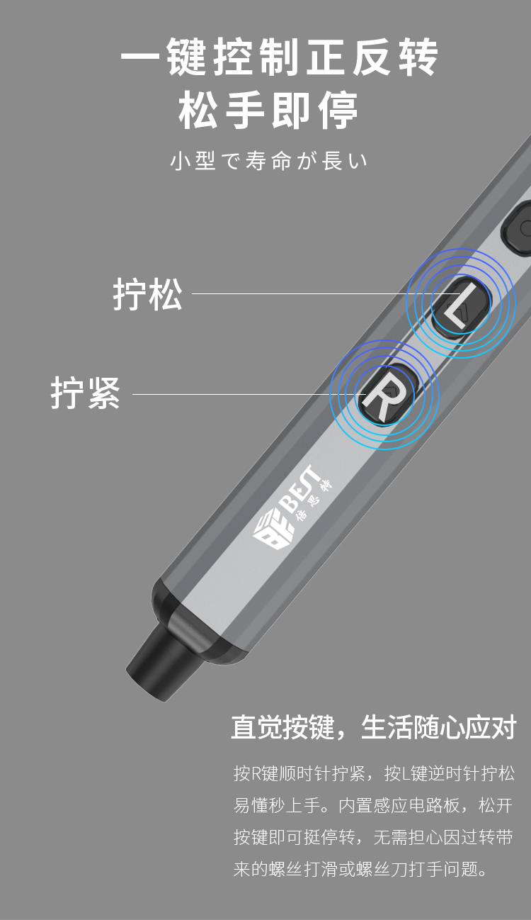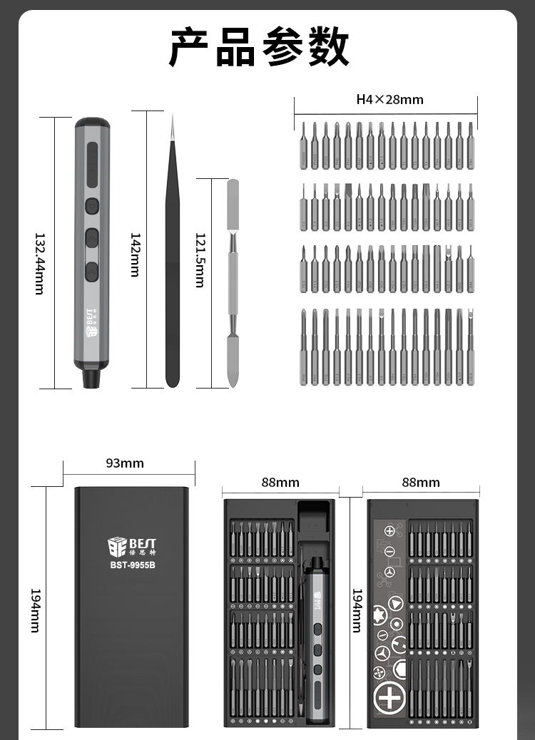 ? 產(chǎn)品名稱: 電動精修螺絲刀套裝? 產(chǎn)品型號: BST-9955B? 產(chǎn)品類別: 電動螺絲刀系列