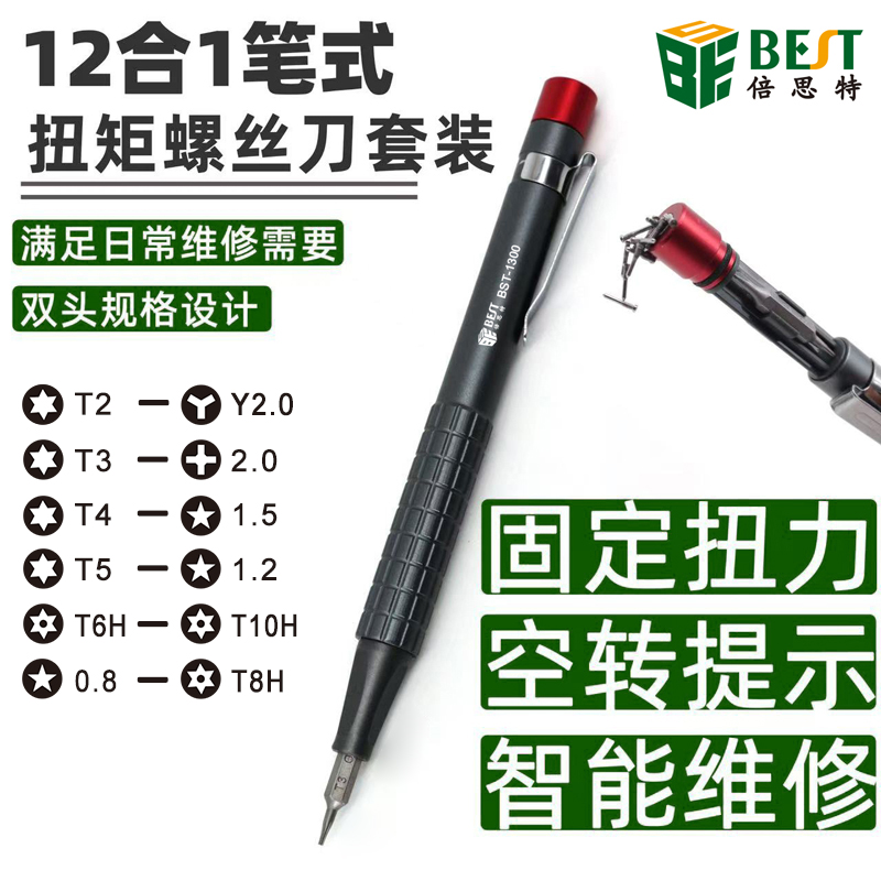 返回當前位置: 首頁 / 產(chǎn)品中心 / BST-1300 筆式12合1固定扭矩螺絲刀套裝
