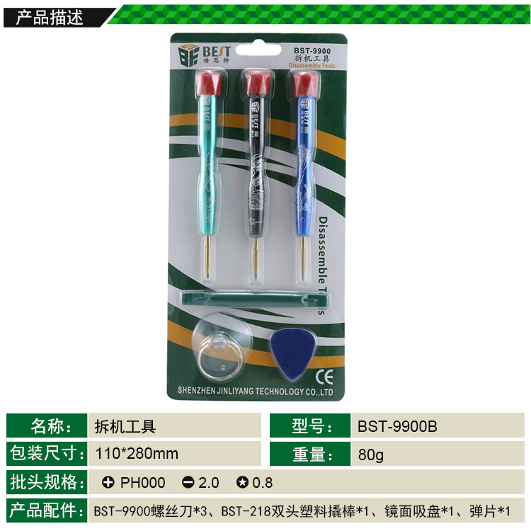 ? 產(chǎn)品名稱: 拆機工具6pcs? 產(chǎn)品型號: BST-9900B? 產(chǎn)品類別: 拆機工具系列