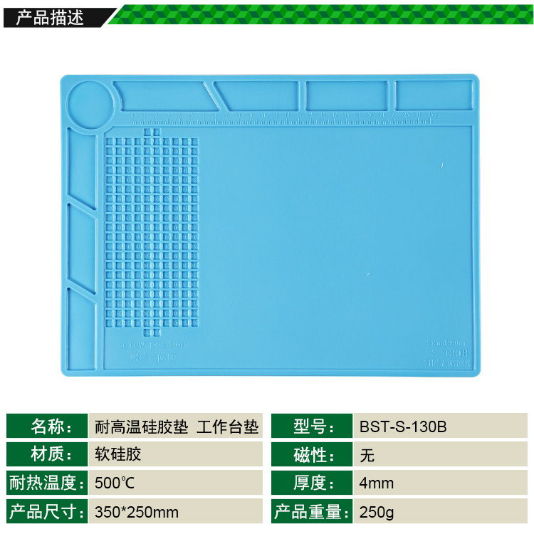 返回當(dāng)前位置: 首頁(yè) / 產(chǎn)品中心 / BST-S-130B 耐高溫硅膠墊 工作臺(tái)墊 帶八格零件收納 螺絲記憶定位區(qū) 隔熱墊