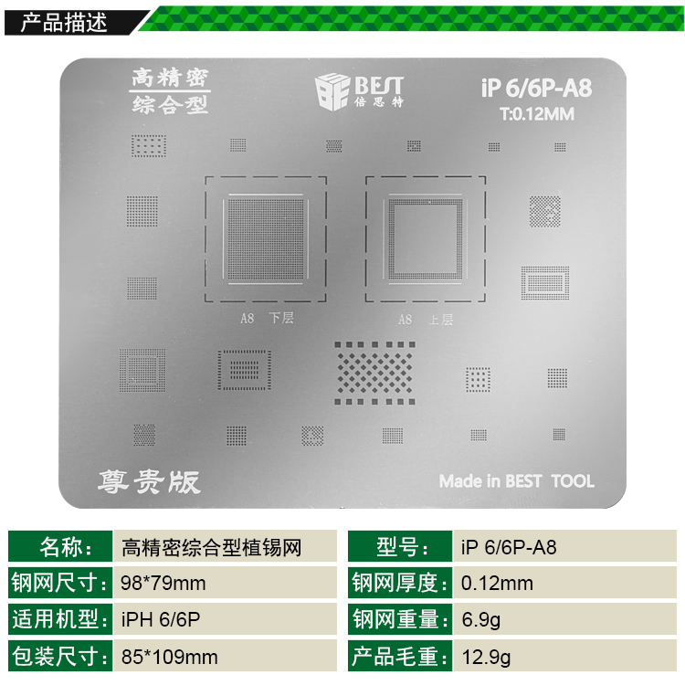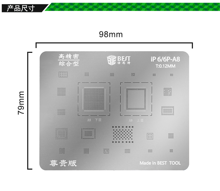返回當(dāng)前位置: 首頁 / 產(chǎn)品中心 / iP 6/6P-A8 BGA植錫網(wǎng) 多用植錫方孔定位鋼網(wǎng) 植錫卡(尊貴版)