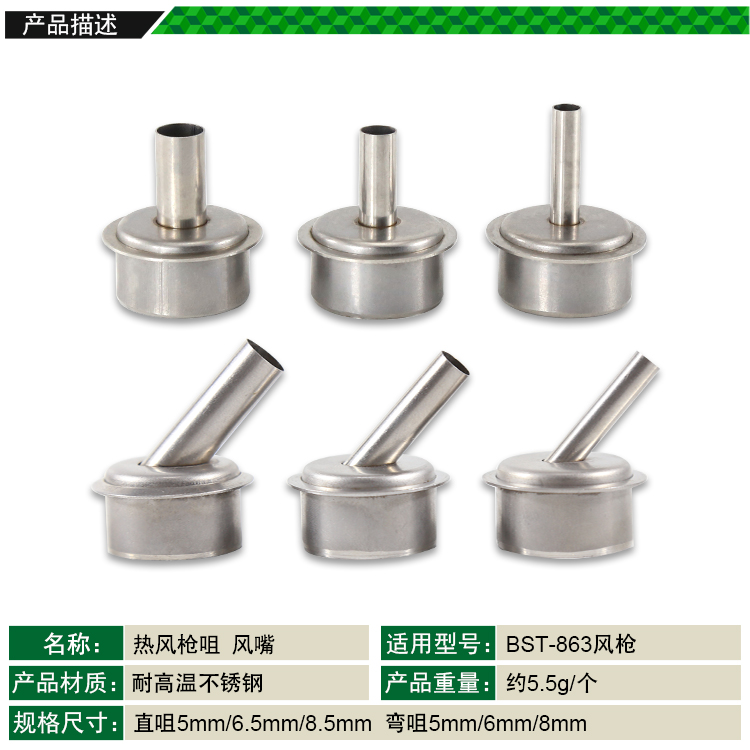 返回當前位置: 首頁 / 產(chǎn)品中心 / BST-863風槍頭 原裝熱風槍嘴 手機維修焊接數(shù)顯拆焊臺彎咀直風咀 耐高溫不銹鋼風槍咀