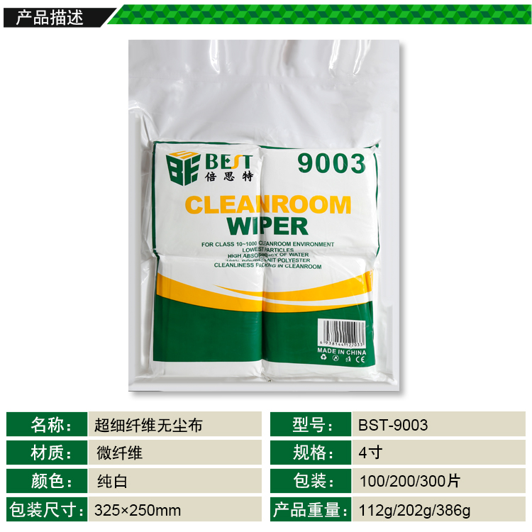 ? 產(chǎn)品名稱: 超細(xì)纖維無塵布? 產(chǎn)品型號: BST-9003? 產(chǎn)品類別: 清潔類系列