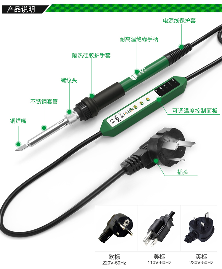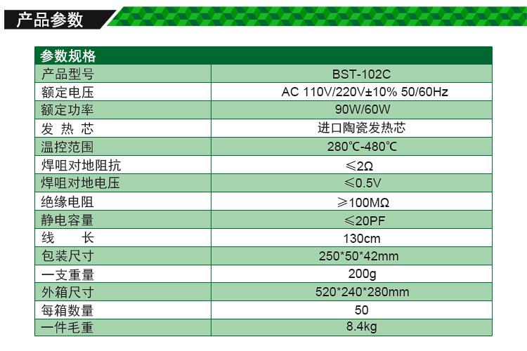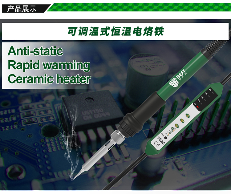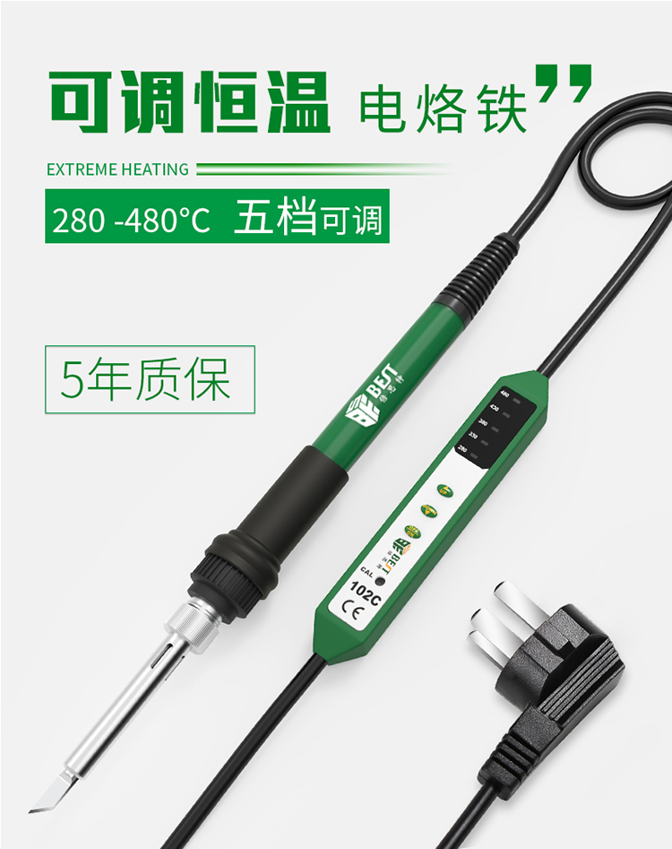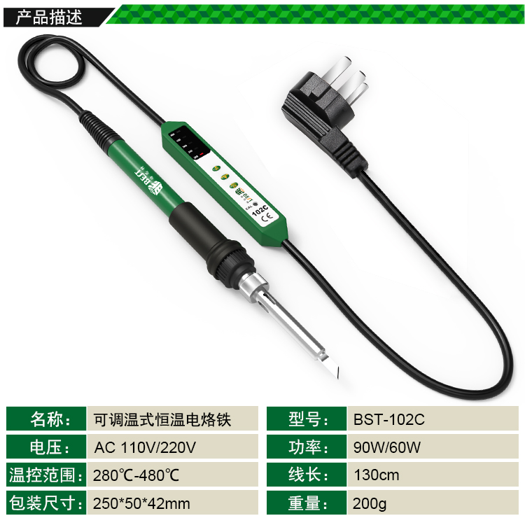 ? 產(chǎn)品名稱: 可調(diào)溫式恒溫電烙鐵? 產(chǎn)品型號(hào): BST-102C? 產(chǎn)品類別: 電烙鐵系列
