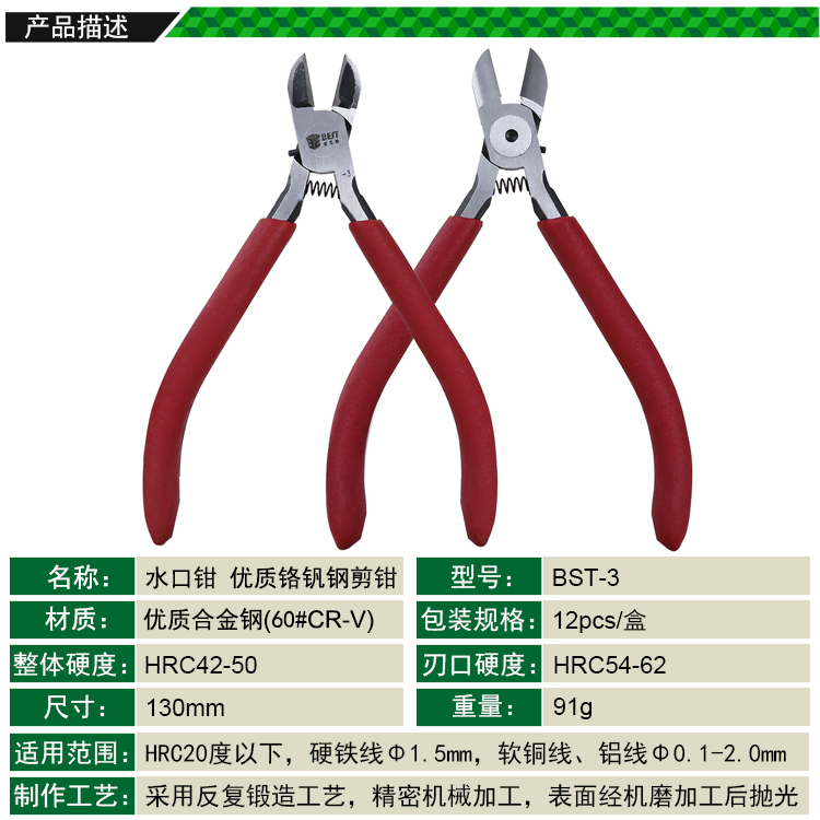 返回當前位置: 首頁 / 產(chǎn)品中心 / BST-3 優(yōu)質鉻釩鋼電子剪鉗 水口鉗 塑料剪鉗 5寸鉗子
