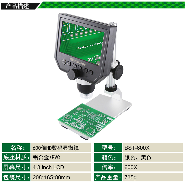 ? 產(chǎn)品名稱: 600倍HD數(shù)碼顯微鏡? 產(chǎn)品型號: BST-600X? 產(chǎn)品類別: 顯微鏡系列