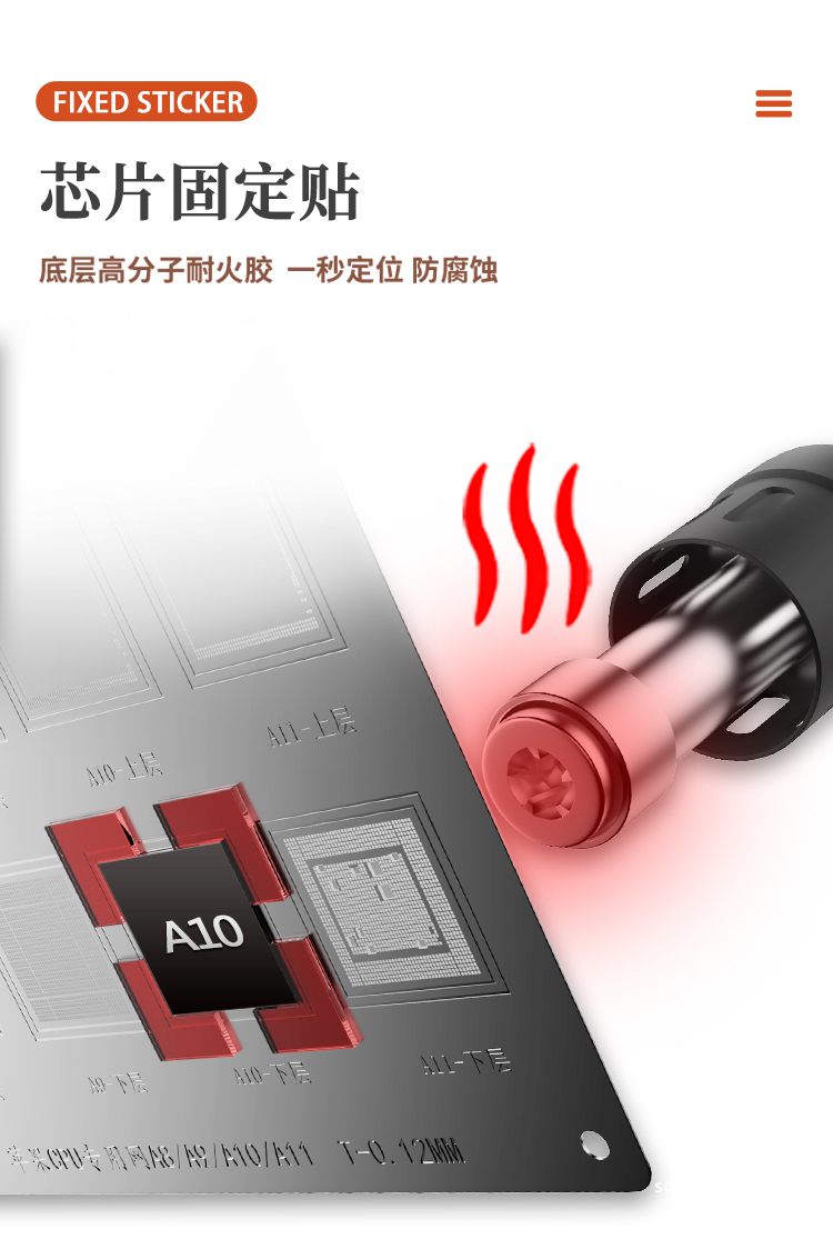 返回當(dāng)前位置: 首頁 / 產(chǎn)品中心 / BST-3DX 3D植錫網(wǎng)終結(jié)者 植錫網(wǎng)芯片固定貼 高分子材料耐火貼 耐高溫 不變形