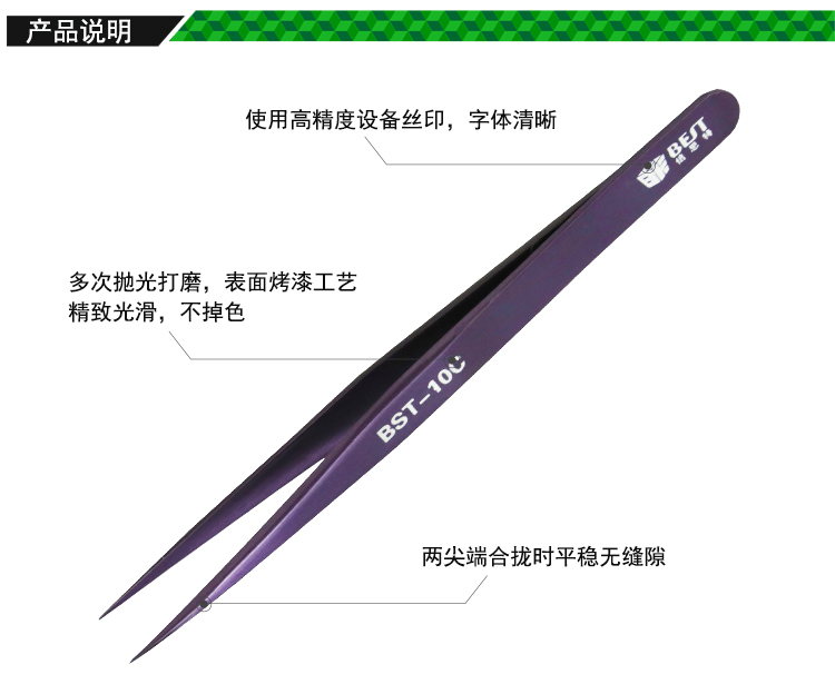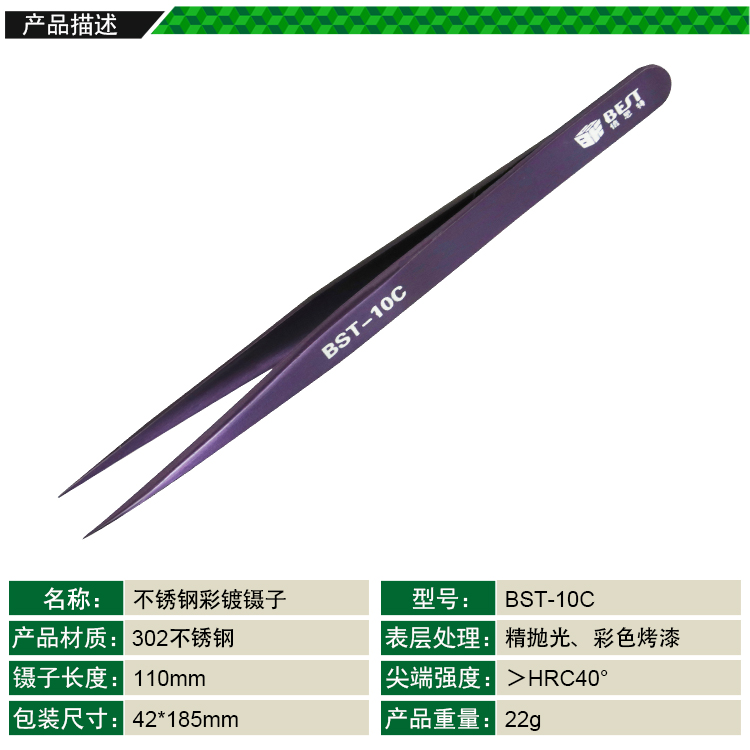 ? 產(chǎn)品名稱: 彩色鑷子 不銹鋼彩鍍鑷子? 產(chǎn)品型號(hào): BST-10C? 產(chǎn)品類別: 鑷子系列