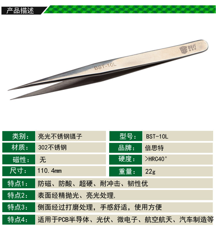 ? 產(chǎn)品名稱: 亮光鑷子 不銹鋼鑷子? 產(chǎn)品型號: BST-10L? 產(chǎn)品類別: 鑷子系列