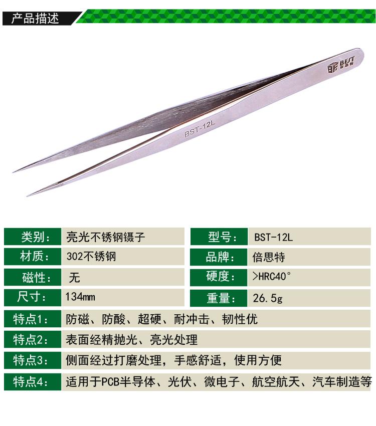 ? 產(chǎn)品名稱: 亮光鑷子 不銹鋼鑷子? 產(chǎn)品型號(hào): BST-12L? 產(chǎn)品類別: 鑷子系列