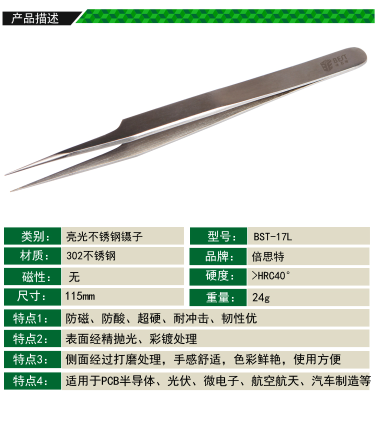 ? 產(chǎn)品名稱: 亮光鑷子 不銹鋼鑷子? 產(chǎn)品型號: BST-17L? 產(chǎn)品類別: 鑷子系列