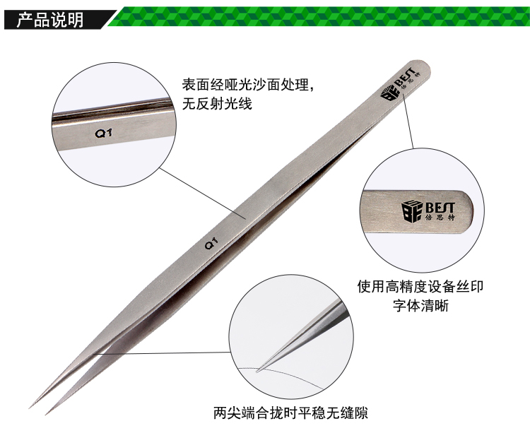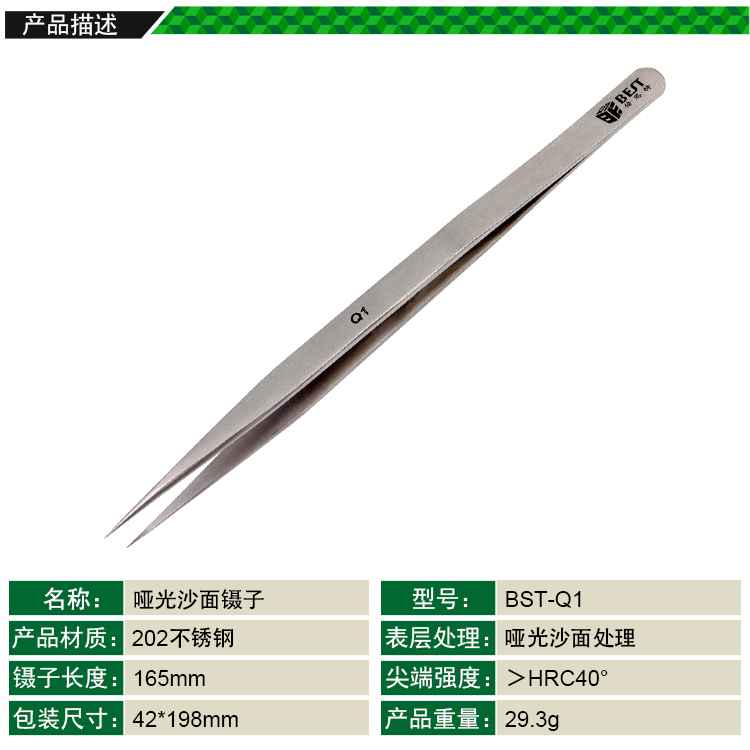? 產(chǎn)品名稱: 亞光沙面鑷子 不銹鋼鑷子? 產(chǎn)品型號(hào): BST-Q1? 產(chǎn)品類別: 鑷子系列