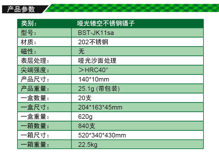 返回當(dāng)前位置: 首頁 / 產(chǎn)品中心 / BST-JK11sa 亞光鏤空鑷子 啞光不銹鋼鑷子