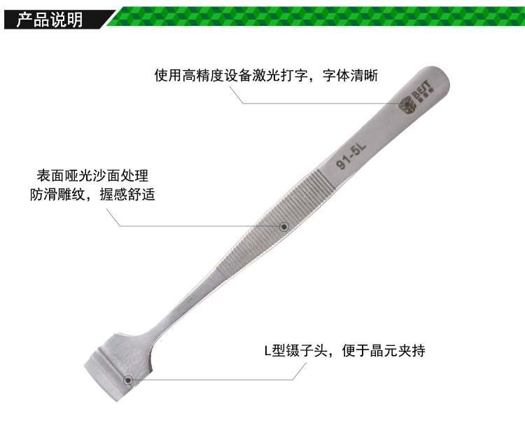 ? 產(chǎn)品名稱: 晶元鑷子? 產(chǎn)品型號: BST-91-5L? 產(chǎn)品類別: 鑷子系列