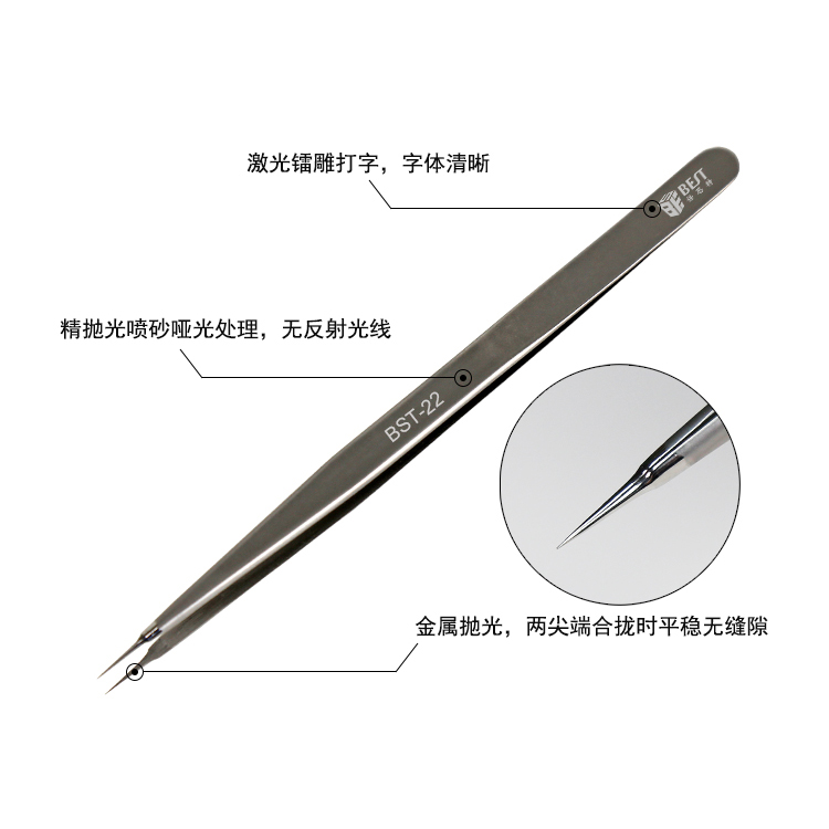 返回當前位置: 首頁 / 產品中心 / BST-22 指紋飛線鑷子 亞光鑷子 不銹鋼鑷子 圓尖頭拋光直鑷子
