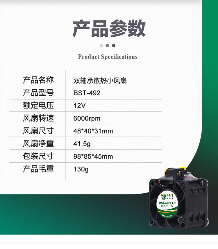 ? 產(chǎn)品名稱: 雙軸承散熱小風(fēng)扇? 產(chǎn)品型號: BST-492? 產(chǎn)品類別: 電動工具系列