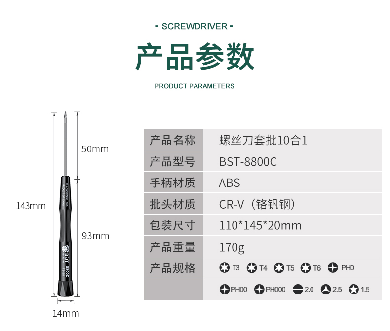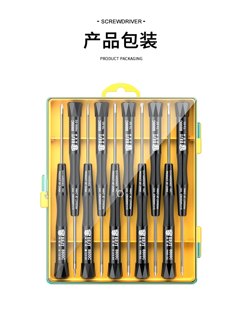 ? 產(chǎn)品名稱: 螺絲套批10合1? 產(chǎn)品型號(hào): BST-8800C? 產(chǎn)品類別: 螺絲批系列