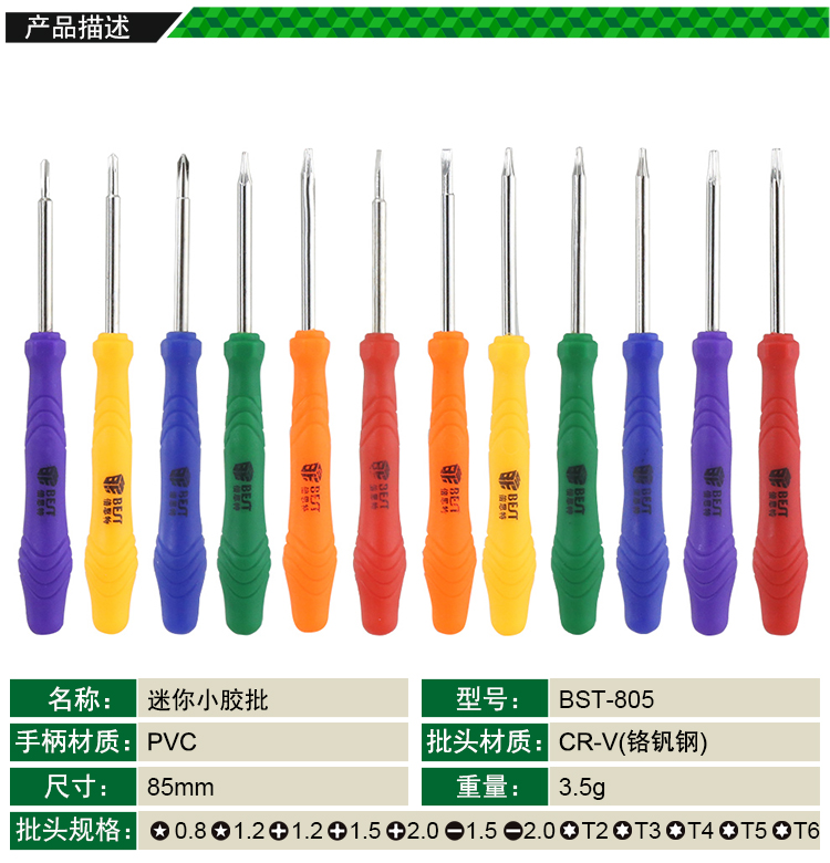 ? 產(chǎn)品名稱: 螺絲批 袖珍膠批? 產(chǎn)品型號(hào): BST-805? 產(chǎn)品類別: 螺絲批系列