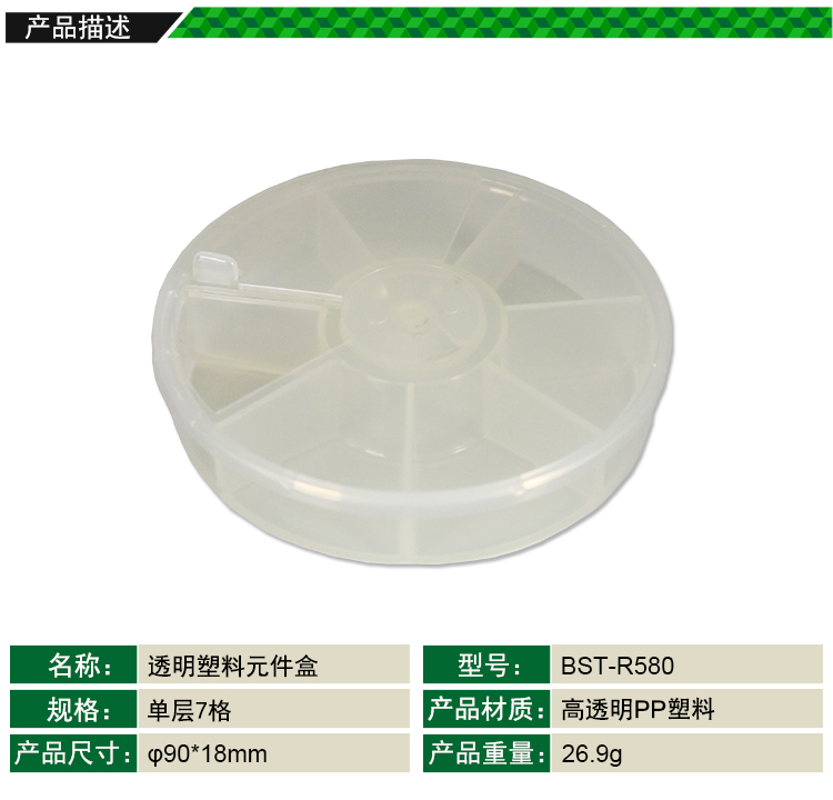 ? 產(chǎn)品名稱(chēng): 7格透明塑料元件盒? 產(chǎn)品型號(hào): BST-R580? 產(chǎn)品類(lèi)別: 元件盒系列