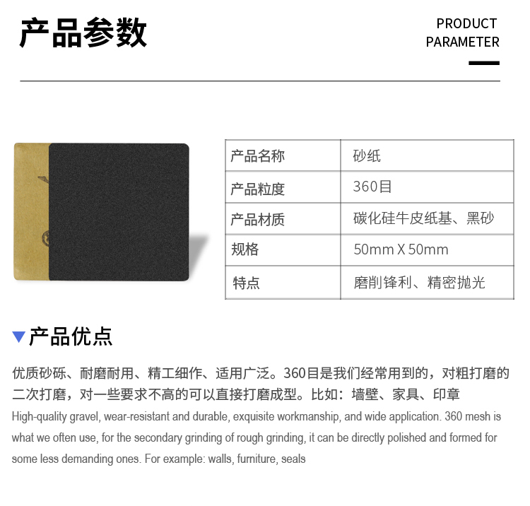 ? 產(chǎn)品名稱: 開刃打磨砂紙? 產(chǎn)品規(guī)格: 50*50mm? 產(chǎn)品類別: 綜合類系列