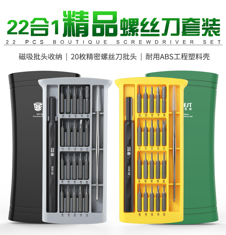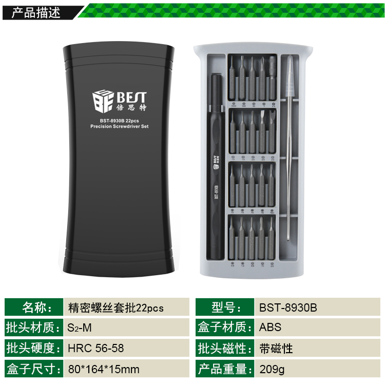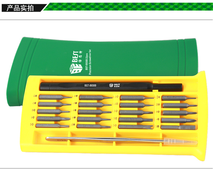 ? 產(chǎn)品名稱: 精密螺絲套批22pcs? 產(chǎn)品型號: BST-8930B? 產(chǎn)品類別: 螺絲批系列