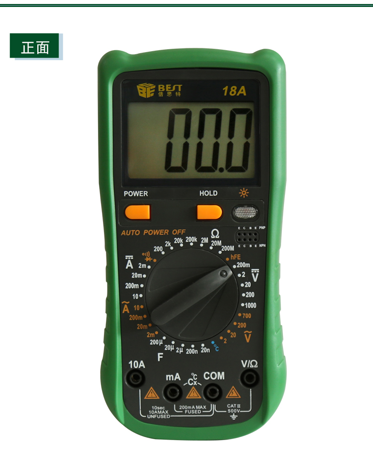 ? 產(chǎn)品名稱: 數(shù)字萬用表? 產(chǎn)品型號: BST-18A? 產(chǎn)品類別: 萬用表系列