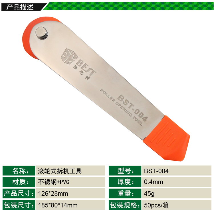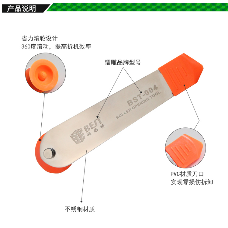 ? 產(chǎn)品名稱: 滾輪式拆機(jī)工具? 產(chǎn)品型號(hào): BST-004? 產(chǎn)品類別: 撬棒撬片系列