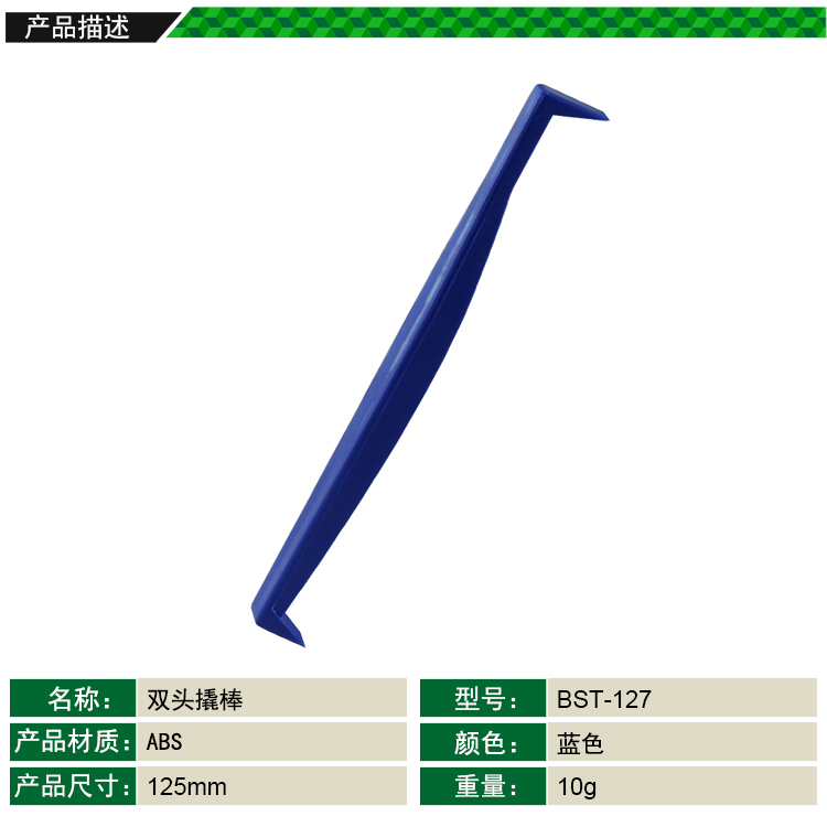 ? 產(chǎn)品名稱: 雙頭撬棒 塑料撬棒? 產(chǎn)品型號: BST-127? 產(chǎn)品類別: 撬棒撬片系列