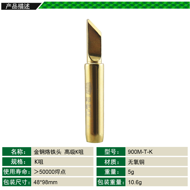 ? 產(chǎn)品名稱: 金鋼烙鐵咀 烙鐵頭 金鋼K咀? 產(chǎn)品型號: 900M-T-K? 產(chǎn)品類別: 烙鐵咀系列