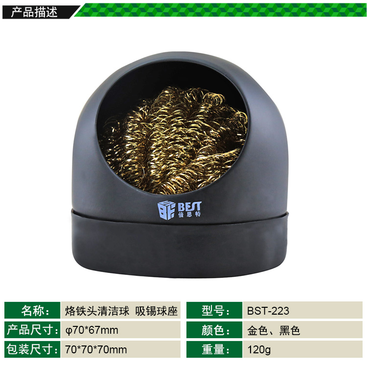? 產(chǎn)品名稱: 吸錫球帶座 烙鐵咀清潔球? 產(chǎn)品型號: BST-223? 產(chǎn)品類別: 吸錫器系列