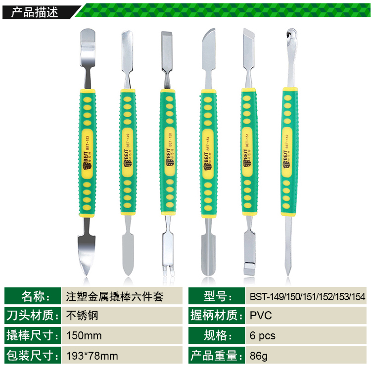 ? 產品名稱: 注塑金屬撬棒六件套? 產品品牌: BEST? 產品類別: 撬棒撬片系列