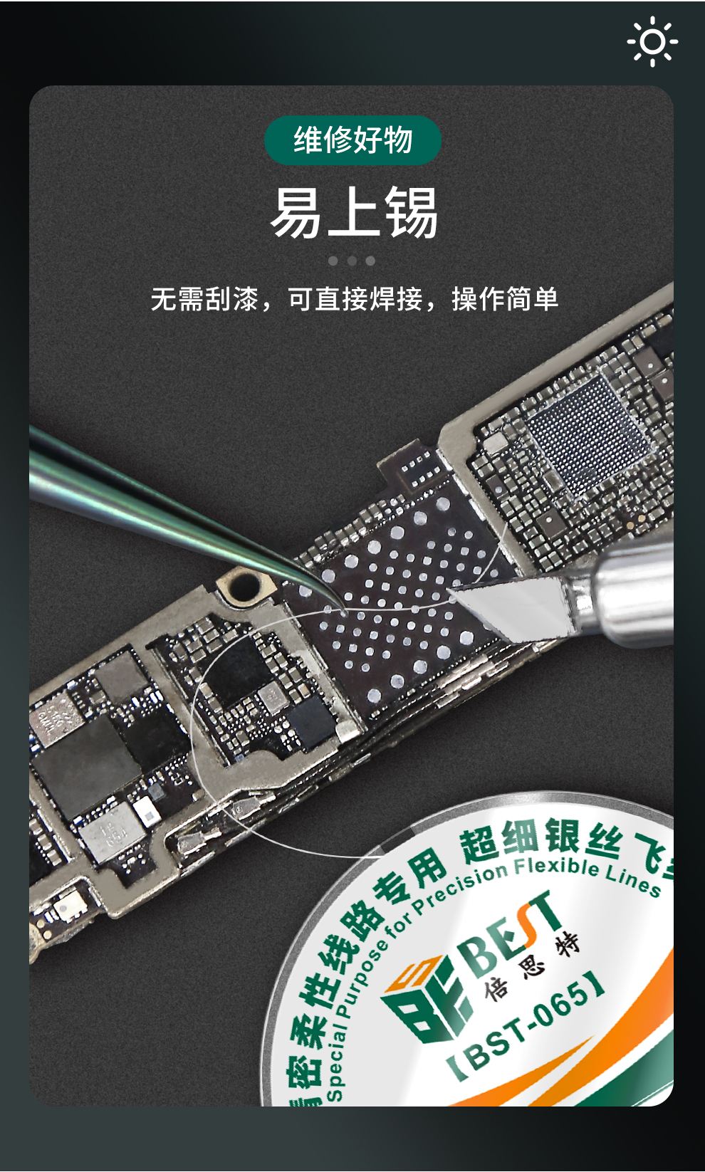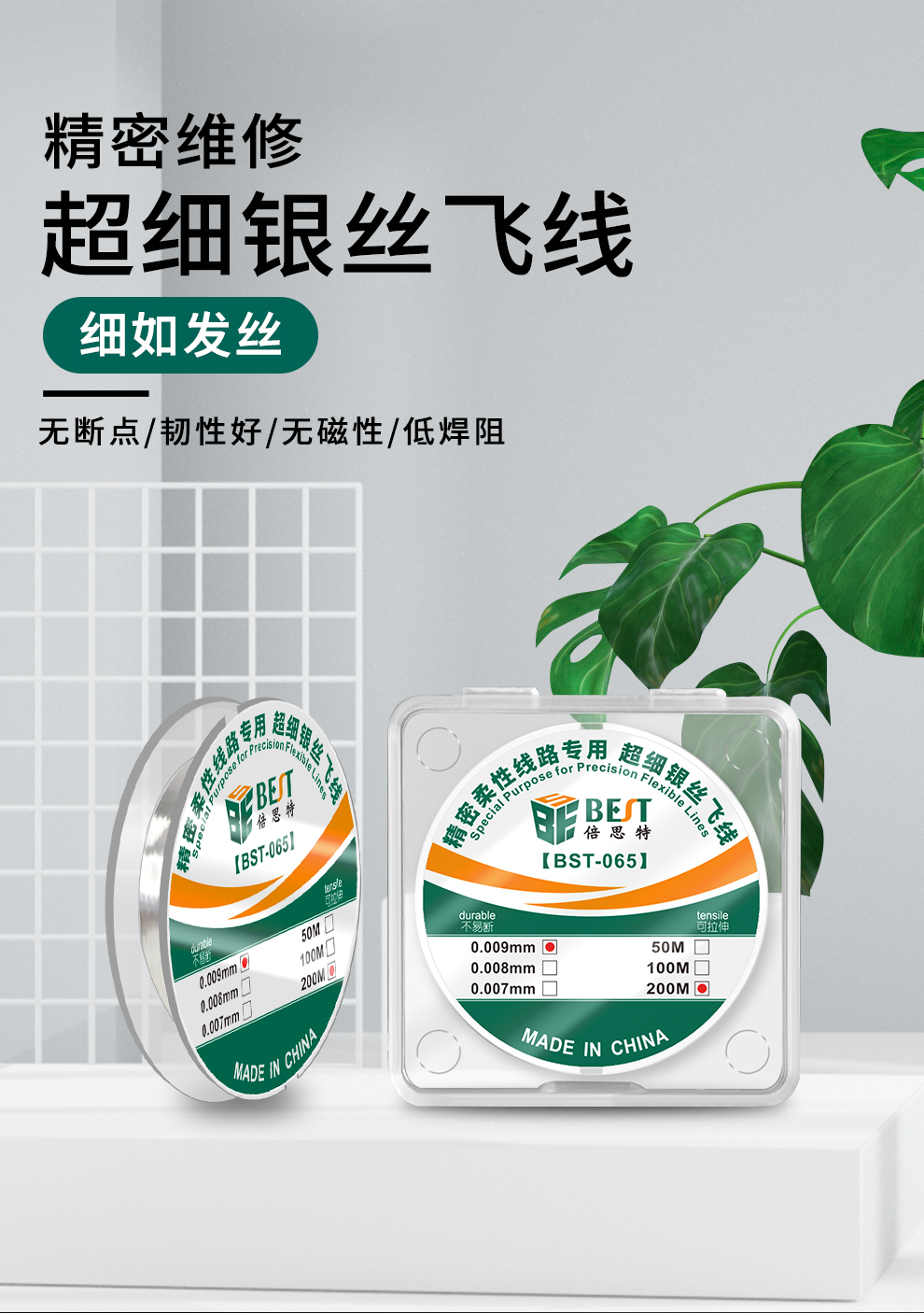 ? 產(chǎn)品名稱: 超細(xì)銀絲飛線? 產(chǎn)品型號: BST-065? 產(chǎn)品類別: 錫線耗材系列