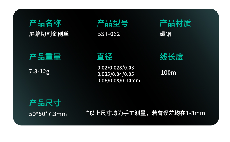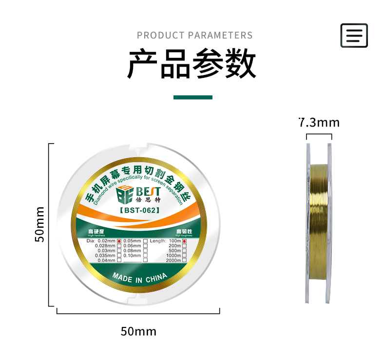 ? 產(chǎn)品名稱: 金剛絲? 產(chǎn)品型號: BST-062? 產(chǎn)品類別: 錫線耗材系列
