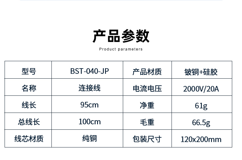 ? 產(chǎn)品名稱: 香蕉雙頭測(cè)試線? 產(chǎn)品型號(hào): BST-040-JP? 產(chǎn)品類別: 表筆線系列