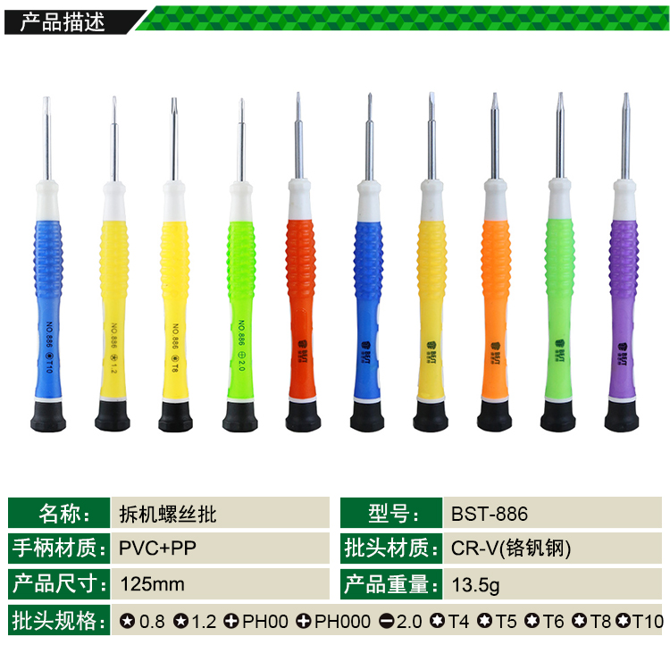 ? 產(chǎn)品名稱: 拆機(jī)螺絲刀? 產(chǎn)品型號(hào): BST-886? 產(chǎn)品類別: 螺絲批系列