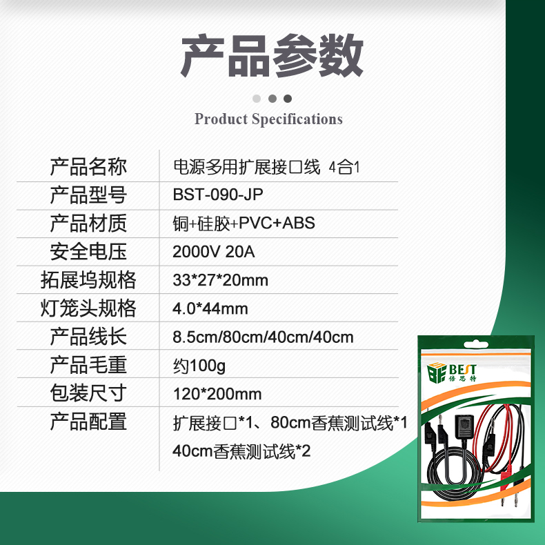 ? 產(chǎn)品名稱: 電源多用擴(kuò)展接口 測試線? 產(chǎn)品型號: BST-090-JP? 產(chǎn)品類別: 開機(jī)線系列