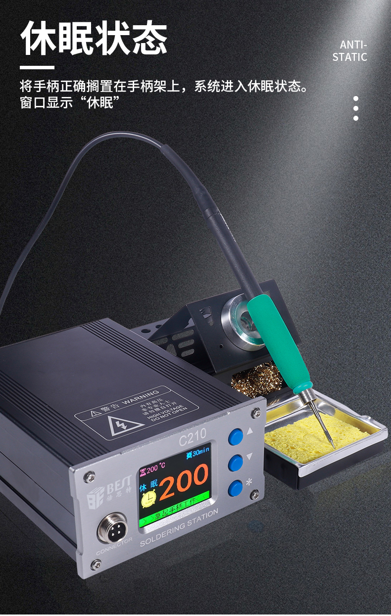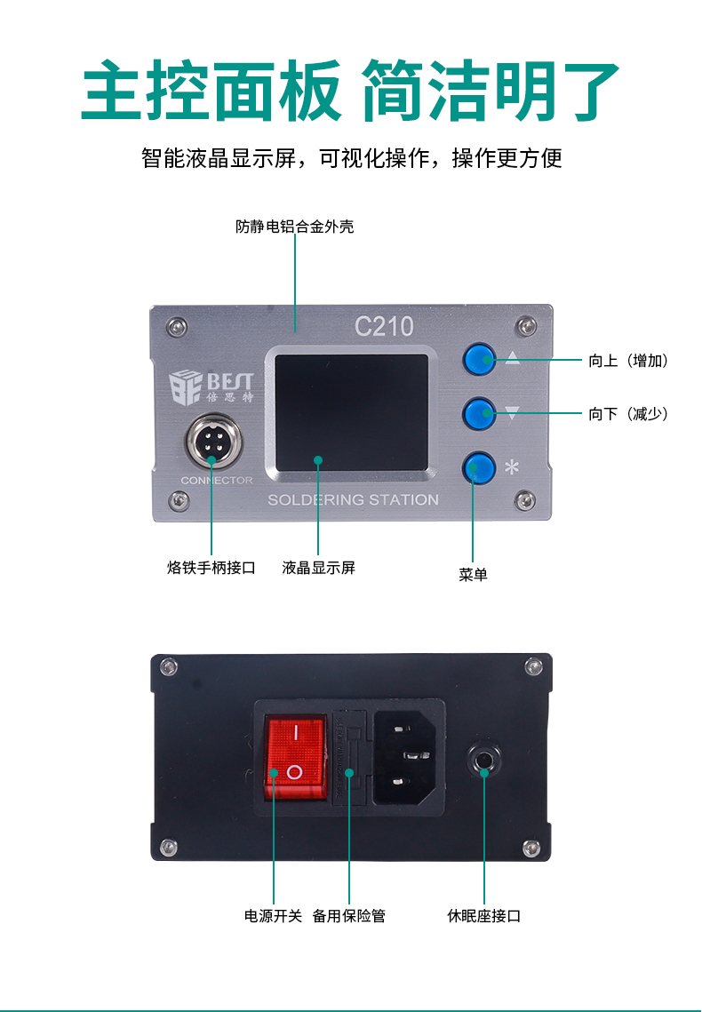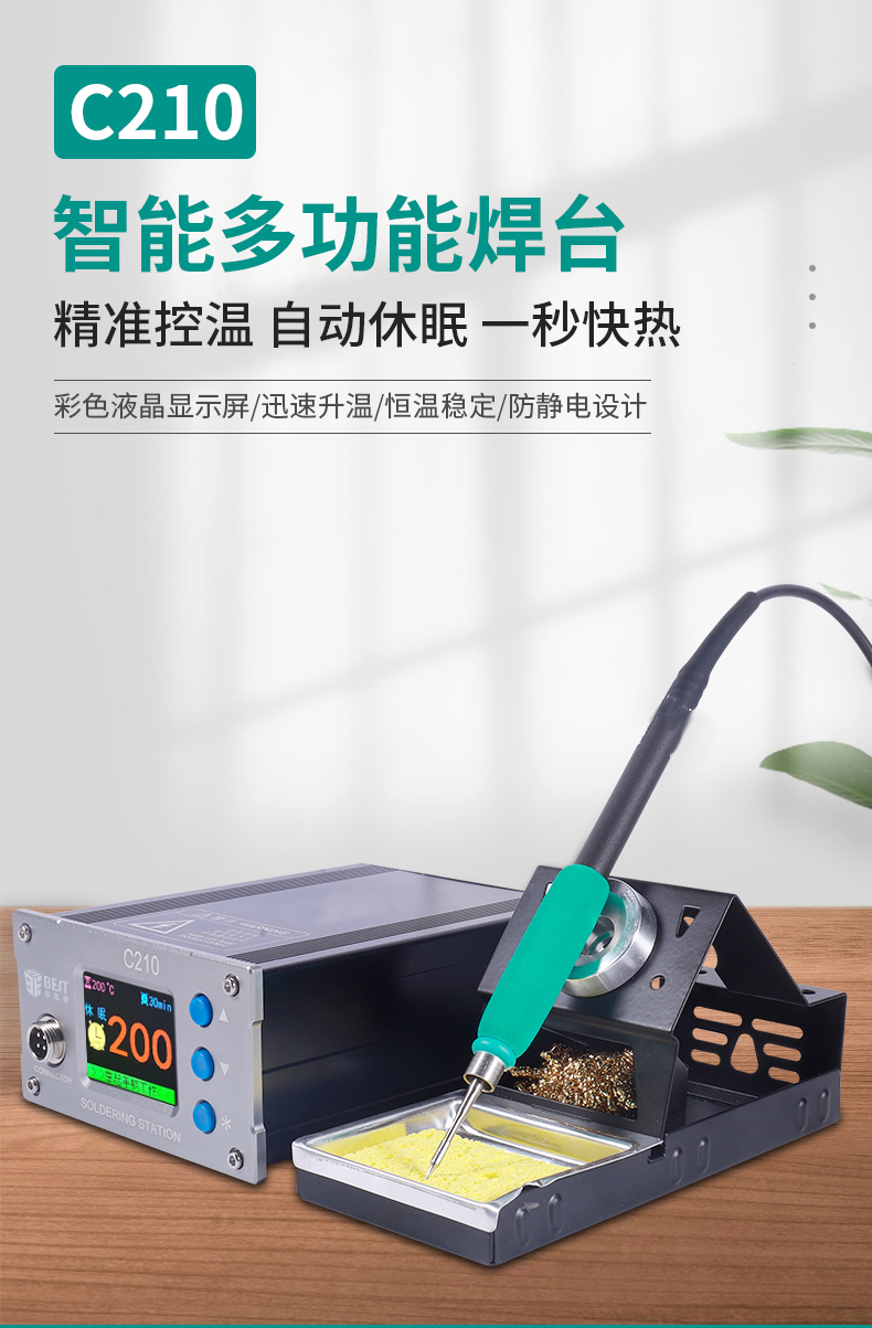 ? 產(chǎn)品名稱: 智能多功能焊臺(tái)? 產(chǎn)品型號(hào): BST-C210? 產(chǎn)品類別: 焊臺(tái)烙鐵系列