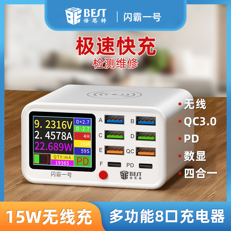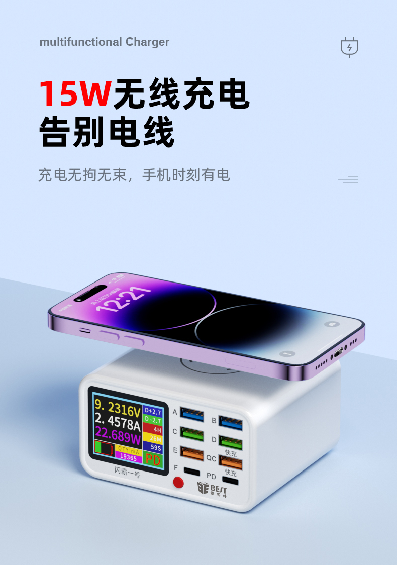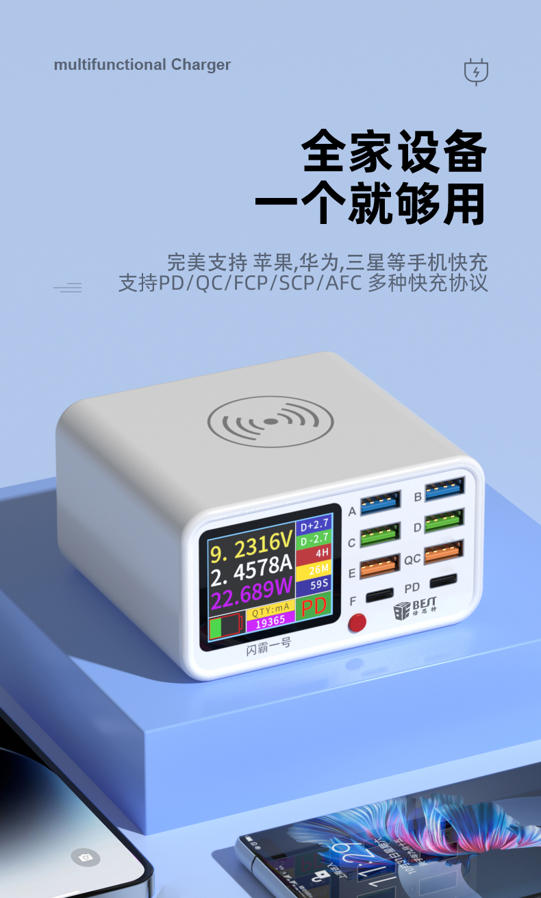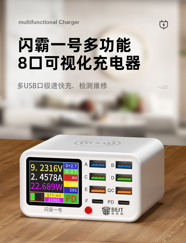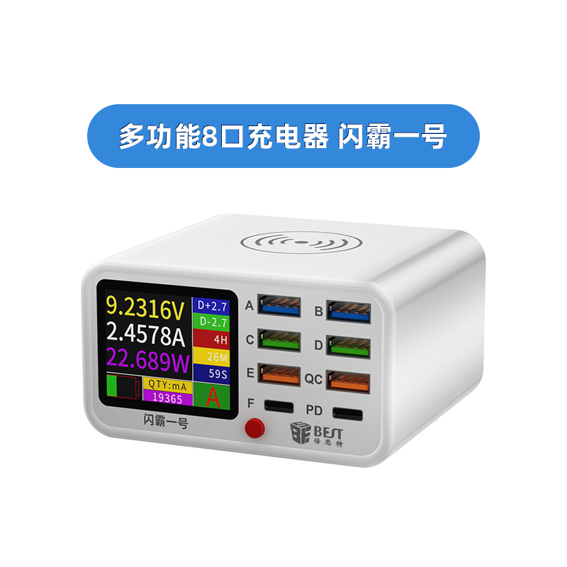返回當(dāng)前位置: 首頁(yè) / 產(chǎn)品中心 / BST-S1 閃霸一號(hào) 多功能8口可視化USB充電器 極速快充 無(wú)線快充 檢測(cè)維修一體數(shù)顯充電器