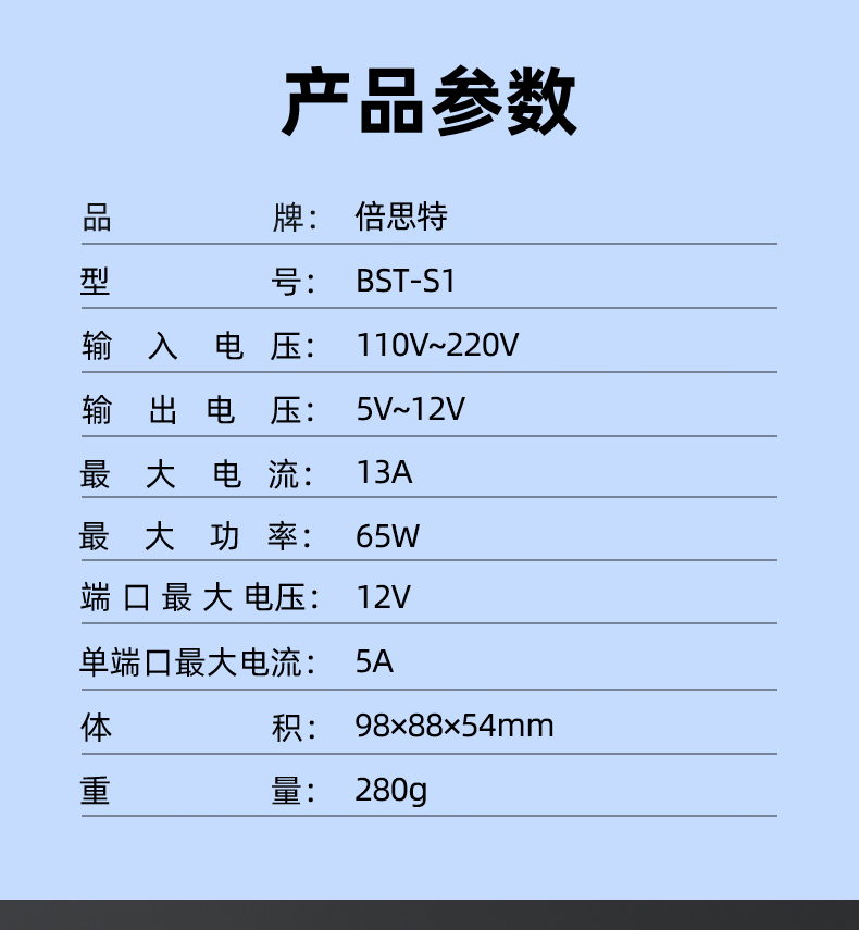 ? 產(chǎn)品名稱: 閃霸一號(hào)? 產(chǎn)品型號(hào): BST-S1? 產(chǎn)品類別: 充電適配器系列